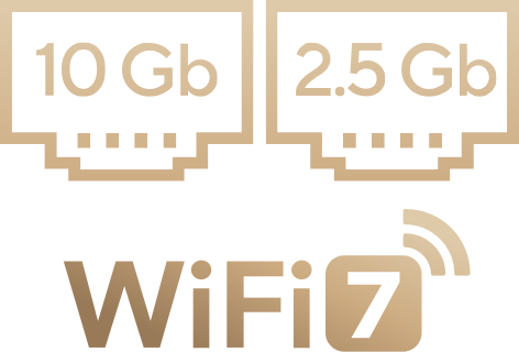 Два порта Ethernet обеспечивают быструю одновременную передачу данных для потоковой передачи или загрузки в интернет со скоростью 2,5 Гбит/с и 10 Гбит/с для локальных сетевых хранилищ (NAS), что позволяет улучшить организацию и безопасность данных.